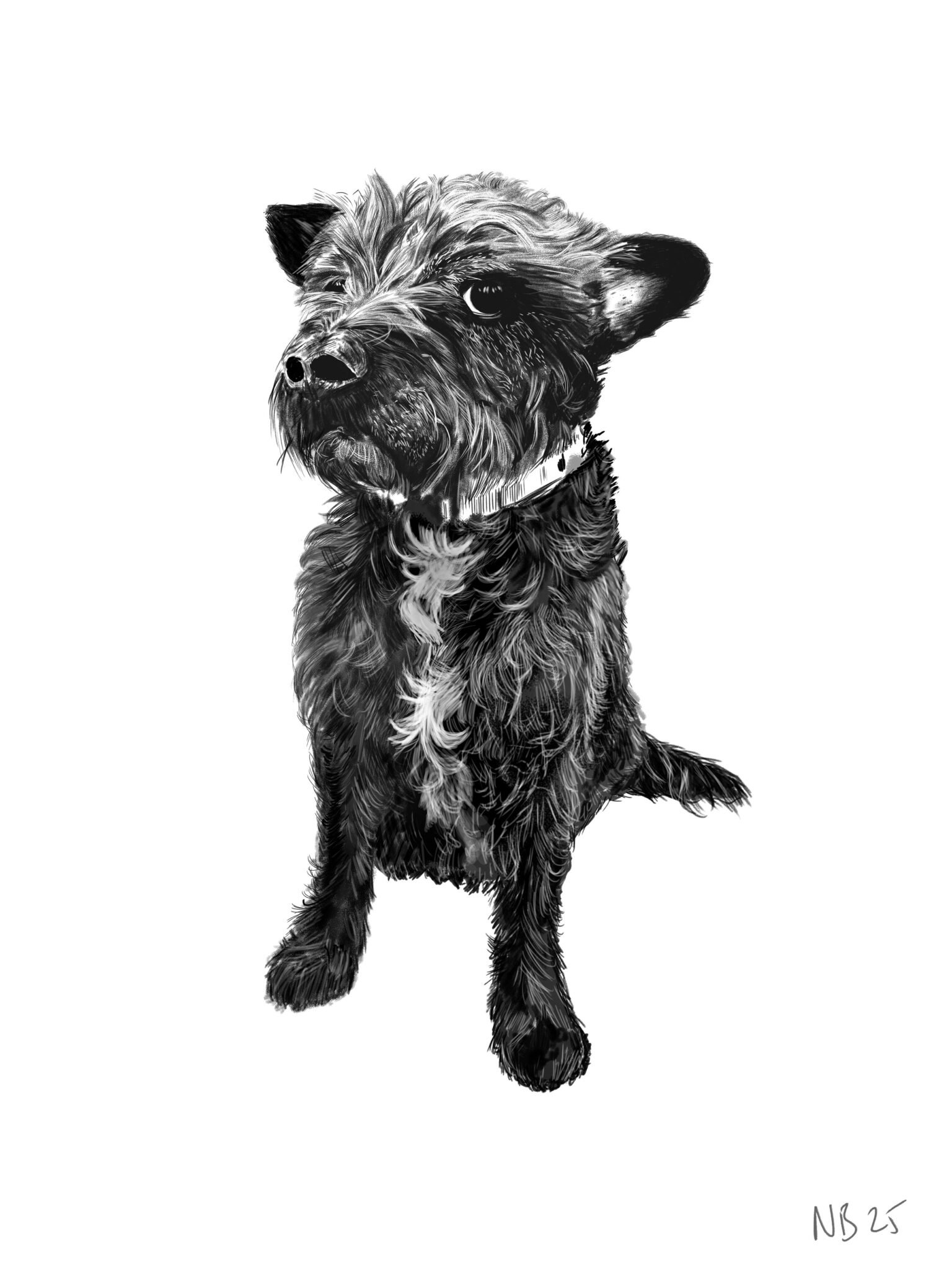 ‘I commissioned this work to remember a beloved furry friend. Neil absolutely captures the nature and special character of this sweet dog. He was also very particular about what type of work suited my request. He worked professionally and thoughtfully. The outcome will help us when we miss our little furry friend. I totally recommend Neil and his approach.’